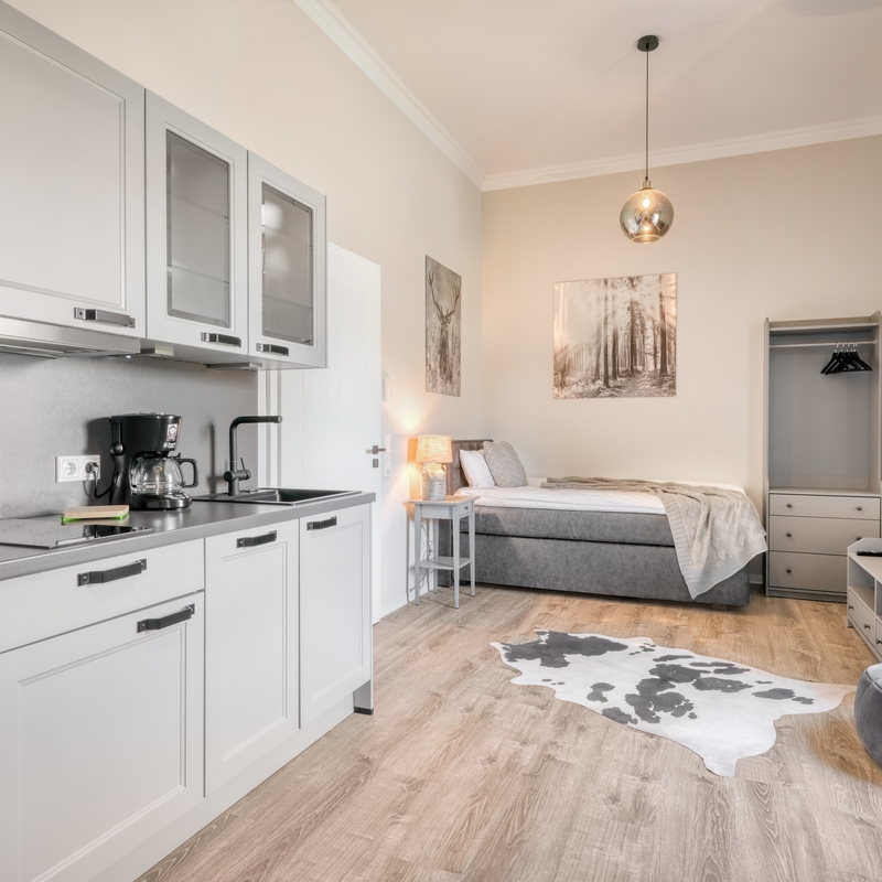 - Hochwertige Küche: Mit einem Kühlschrank inklusive 3-Sterne-Gefrierfach, Kochplatte, Backofen & Mikrowelle als Kombigerät, Geschirrspülmaschine (außer App. 6), Kaffeemaschine, Toaster, Wasserkocher, Geschirr und Besteck, Tassen und Gläsern. Hier können Sie Ihre eigenen Mahlzeiten zubereiten und sich wie zu Hause fühlen.